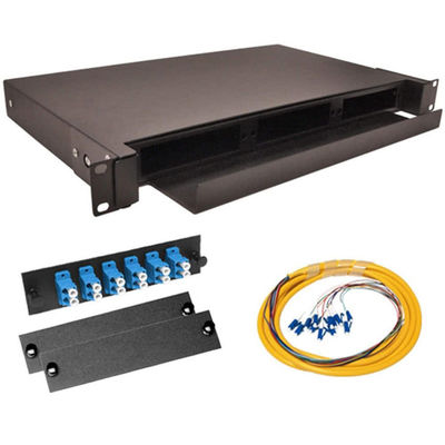 Jogos carregados do painel de remendo 1U com as tranças de 6 portos a 36 portos em todos os tipos LC, LC APC, SC, SC APC, FC, FC APC, e ST e até 72 portos do conector com LC ou LC APC. jogos do painel de remendo 2U com as tranças de 6 portos a 72 portos em todos os tipos LC, LC APC, SC, SC APC, FC, FC APC, e ST e até 144 portos do conector com LC ou LC APC.
